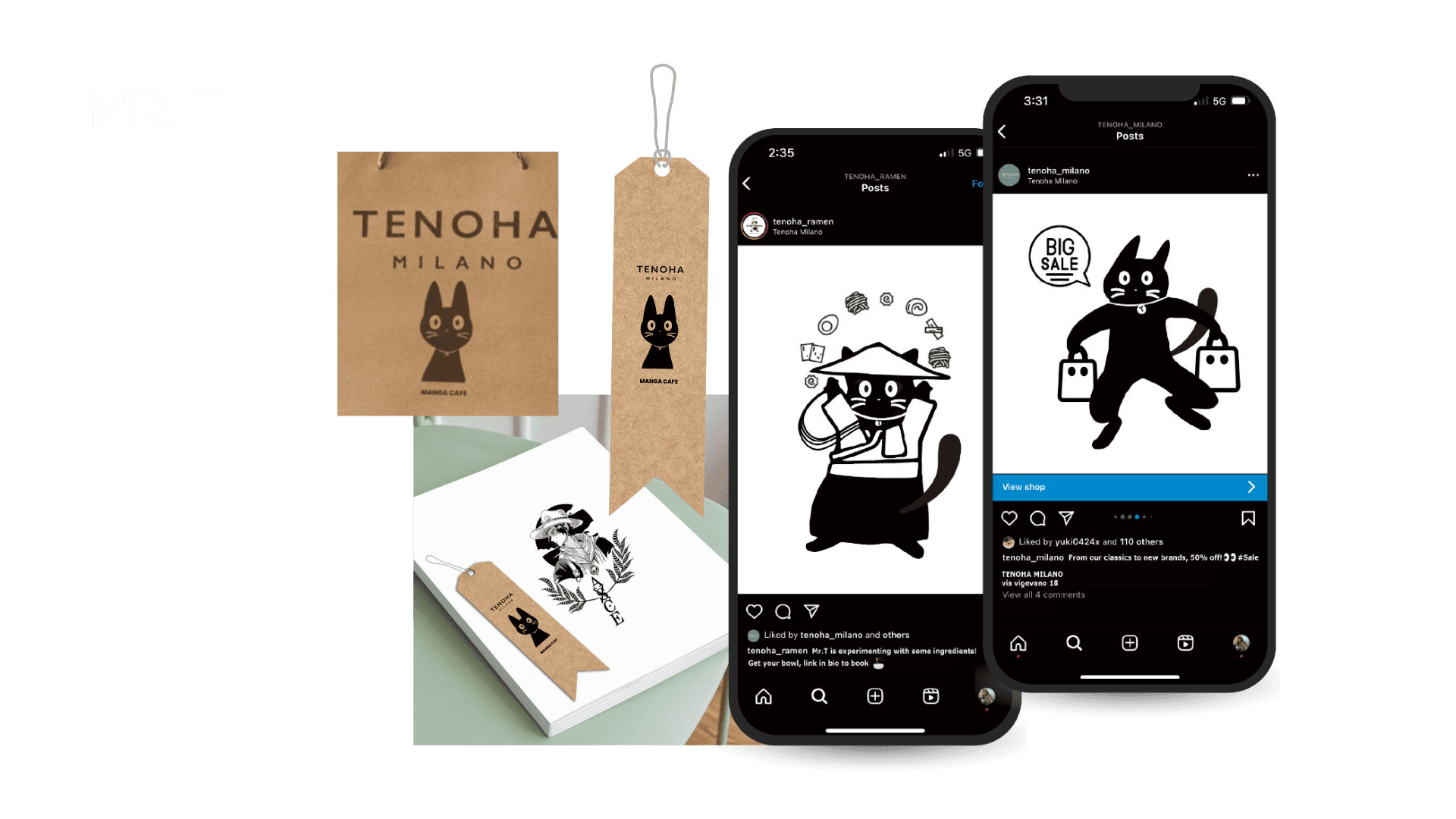 Meet Mr. T: playful, expressive, and inspired by Japanese illustration. He’s a friendly face across Tenoha—appearing on signage, products, digital content, and social media. Versatile and full of character, Mr. T helps build emotional connection while bringing lightness and fun to the brand.